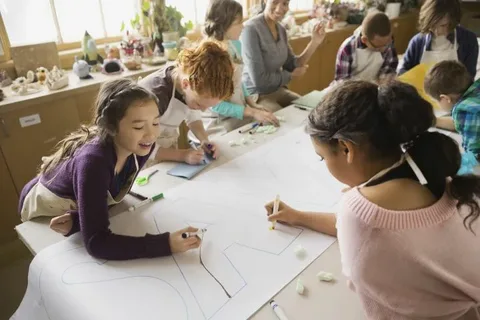 Painting, coloring, clay work, and crafts to encourage imagination and fine motor skills.